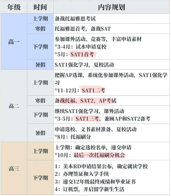 3、AP課程體系高中三年升學(xué)時(shí)間規(guī)劃表