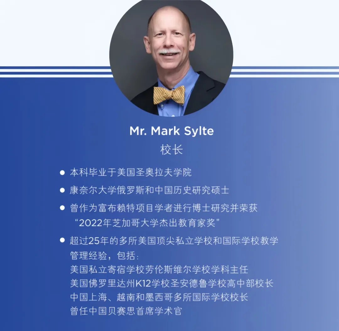 接任者Mark Sylte絕非等閑之輩。他擁有超過25年的教學管理經驗,曾任職于多所美國頂尖私立學校和國際學校,還擔任過中國貝賽思首席學術官。