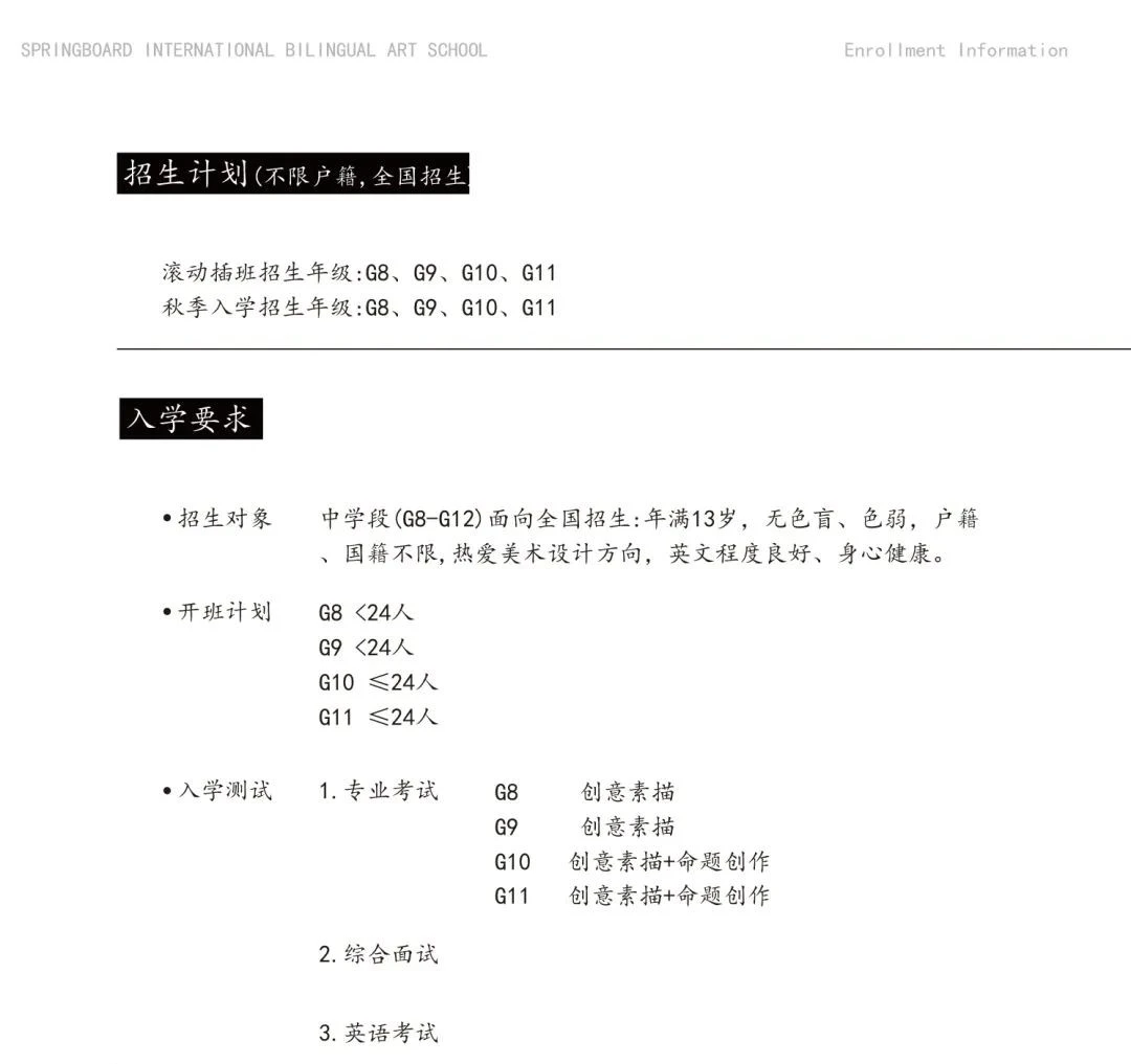 中學段(G8-G12)面向全國招生:年滿13歲,無色盲、色弱,戶籍、國籍不限,熱愛美術設計方向,英文程度良好、身心健康。