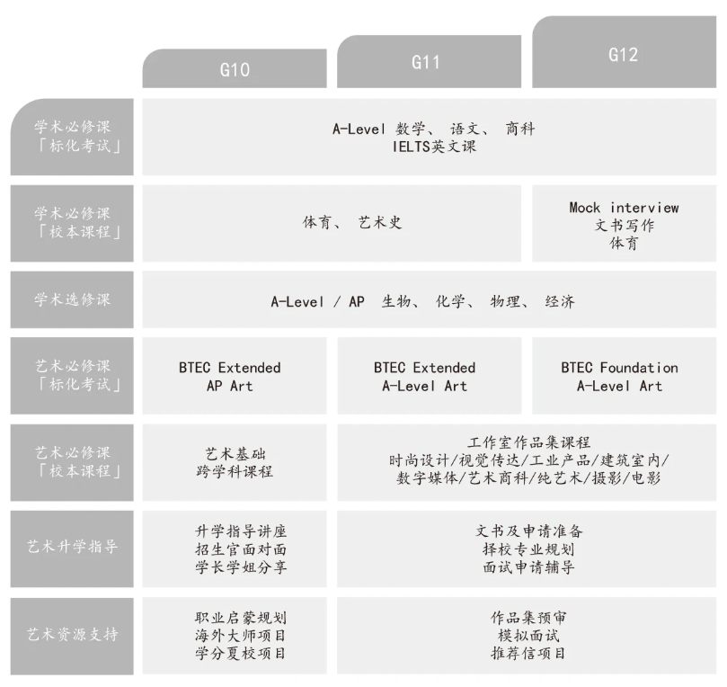 君誠國際藝術高中在高中學段(G10-G12)以獨特而完善的課程體系,為學生提供卓越的學術與藝術教育。學校精心開設多種國際化標準課程,包括A-Level、BTEC和AP課程,構建了全面且具備專業深度的教育框架。