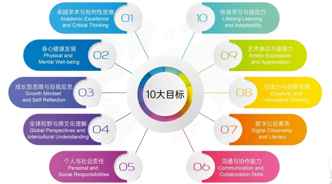 學校以“明德至善,中西通才”為核心教育理念,以培養六大核心素養為指導思想,旨在培養通曉中西文化精髓、身心健康、具有創造性思維及社會責任感的世界公民。