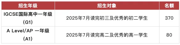 參考去年的安排,深國交主要招收IGCSE國際高中一年級(G1)和A-Level一年級(A1)的學生。具體來說,G1的招生對象為讀完初三及優秀的初二學生,A1的招生對象為讀完高二及優秀的高一學生。