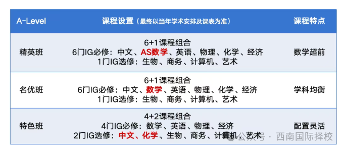 A-Level名校班:計劃招生20人,學制3年。