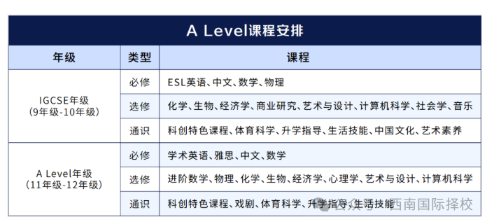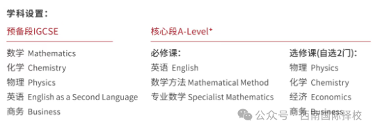 開設的A-level學科:開設數(shù)學、物理、化學、經(jīng)濟、藝術等核心科目,學生可選擇3-4門課程學習,主攻英聯(lián)邦及港澳地區(qū)高校,提供三年制或四年制學制,滿足不同學生需求。