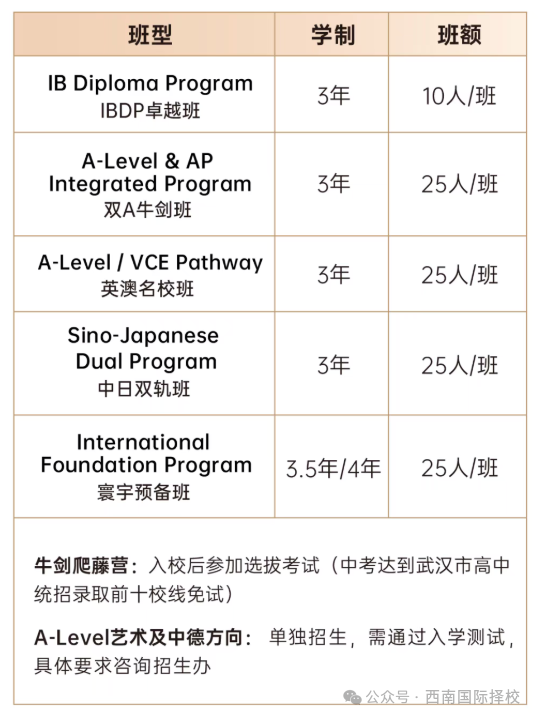 班型:牛劍實驗班、世界名校班、高中預備班